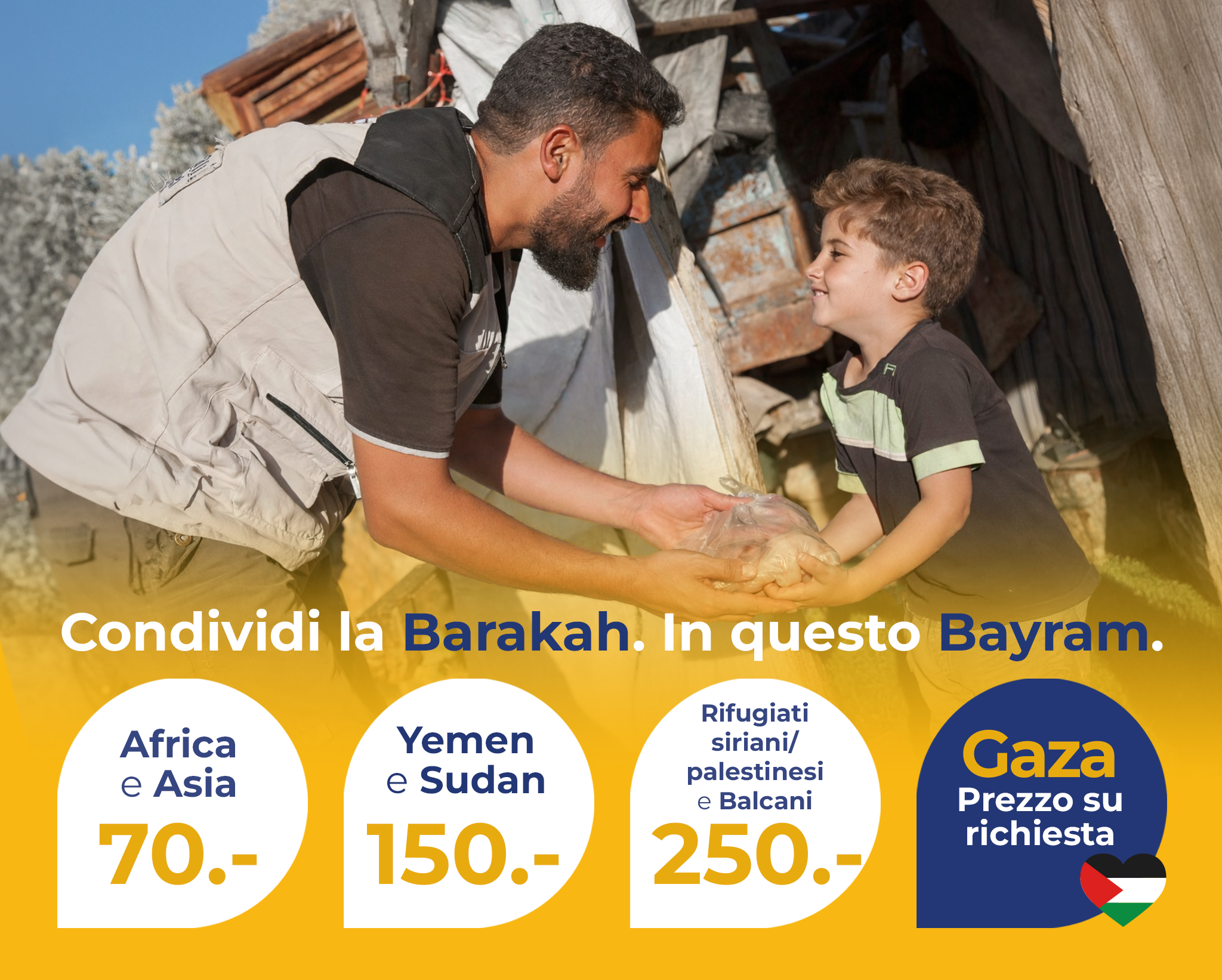 *Kosovo, Macedonia del Nord e Bosnia. ** A causa della situazione attuale a Gaza, i prezzi del Qurban cambiano ogni giorno; contattaci per conoscere il prezzo aggiornato.